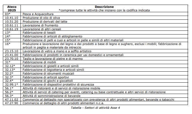 Tabella codici ATECO Asse 4