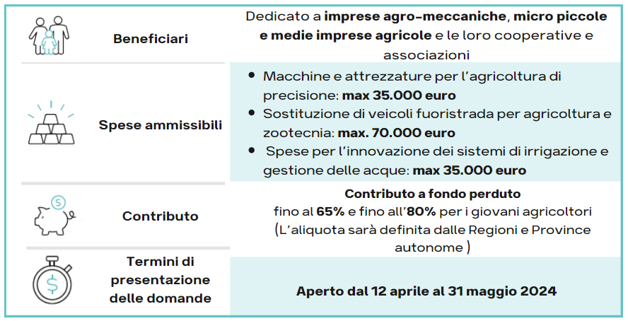 - a) Supporto all’investimento in macchine e attrezzature per l’agricoltura di precisione;