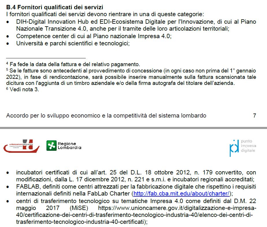 Obiettivi: sviluppare la capacità di collaborazione tra MPMI e tra esse e soggetti altamente qualificati nel campo dell’utilizzo delle tecnologie I4.0; promuovere l’utilizzo da parte delle MPMI lombarde di servizi o soluzioni focalizzati sulle nuove competenze e tecnologie digitali; incentivare modelli di sviluppo produttivo green driven orientati alla qualità e alla sostenibilità.